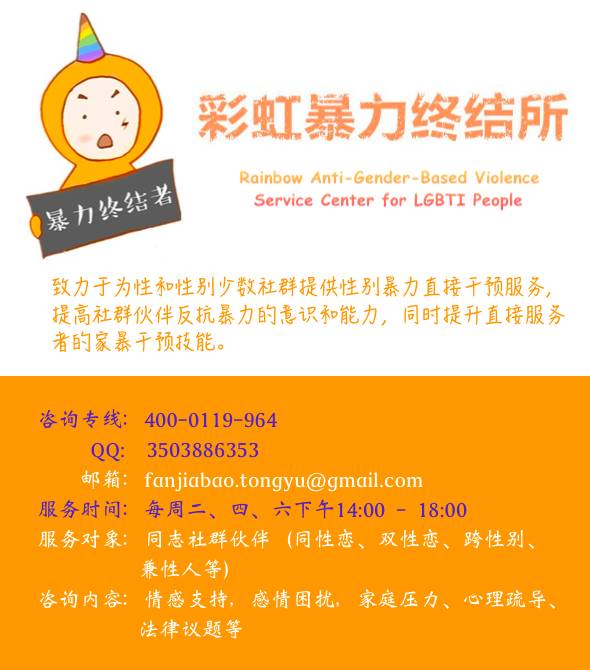 活动地点:北京同志中心(北京市朝阳区新天第大厦B座2606,柳芳地铁站,B出口)