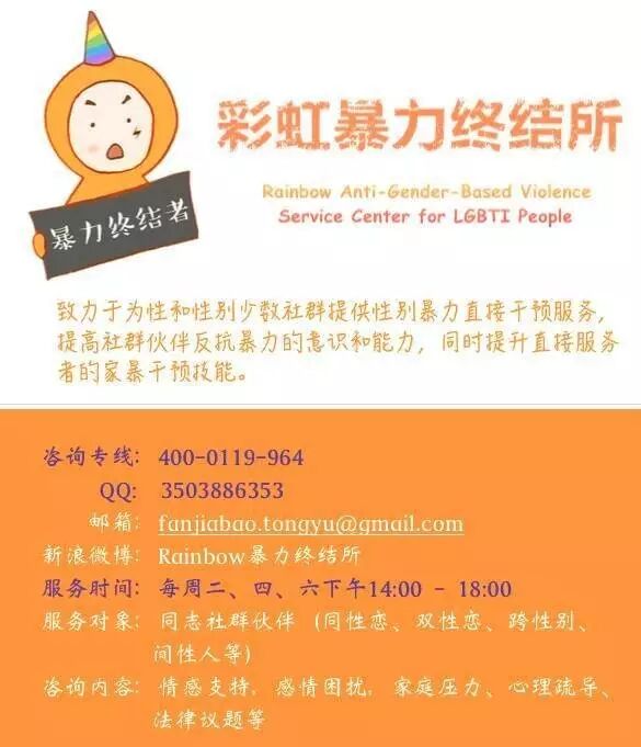 通过此次活动,我们希望以一人一故事剧场方式给大家呈现出发生在身边的暴力。并积极地采取干预暴力的措施,或给予自己/伙伴支持,找到彩虹暴力终结所(联系方式请见文末名片)。