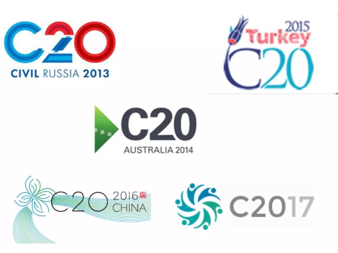 图2 C20始于2013年,每届C20在该届G20会议的主办国、并先于同届G20召开;图为历届C20会徽