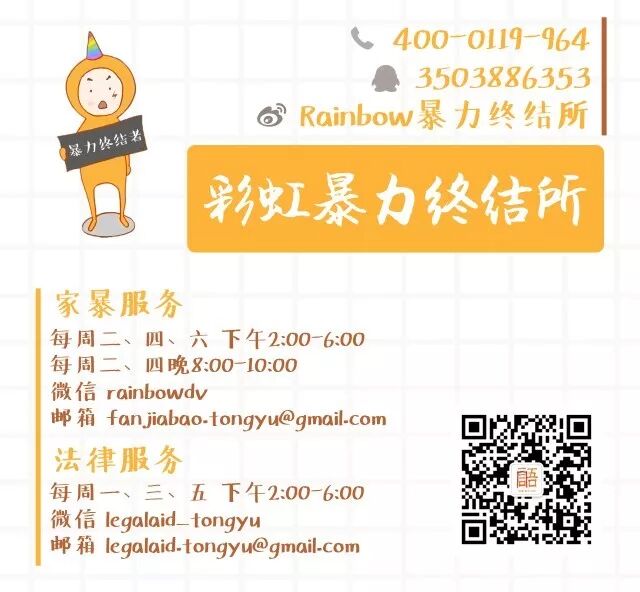 彩虹暴力终结所成立于2016年6月25日,旨在为性和性别少数社群提供性别暴力直接干预服务,提高社群伙伴反抗暴力的意识和能力,同时提升直接服务者的干预技能,促进合作。