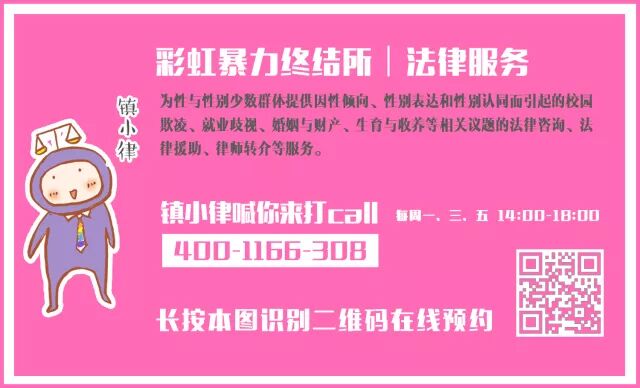 彩虹暴力终结所专注为社群提供与性倾向、性别认同、性别表达和性特征相关的法律服务,律师一对一咨询是彩虹暴力终结所专门为社群提供的,和律师一对一交流的服务形式,能够为社群伙伴提供最个性化最专业的服务。