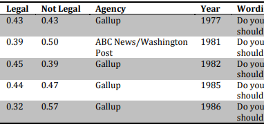 另外,进行调查的机构本身也可能成为影响调查结果的变量之一。不同的新闻机构和民调组织有不同的抽样、加权方式,问卷的措辞、样本量、报道策略也不尽一样,而这些特征都有可能对调查产生显著且系统的影响,这被称为民调的“机构效应”(“House Effects”)。威廉姆斯机构的这份研究指出,在昆尼皮亚克大学(Quinnipiac University)、福克斯新闻(Fox News)、安纳博格选举调查(National Annenberg Election Survey)的调查中,公众对同婚的支持率比所有同期调查所得支持率数据的平均值更低。而《华盛顿邮报》、《纽约时报》、ABC新闻、美联社/国家宪法中心(Associated Press/National Constitution Center)进行的调查,得到的支持率数据则比上述平均值高。不过,在这份研究所考察的21家民调机构中有15家机构都没有表现出明显的“机构效应”,这说明是否存在“机构效应”并不绝对。