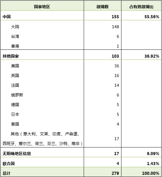 那么,关于LGBTI议题的报道主要涉及哪些国家和地区呢?通过逐条阅读有效微博,我们发现了微博报道LGBTI内容主要涉及的国家地区: