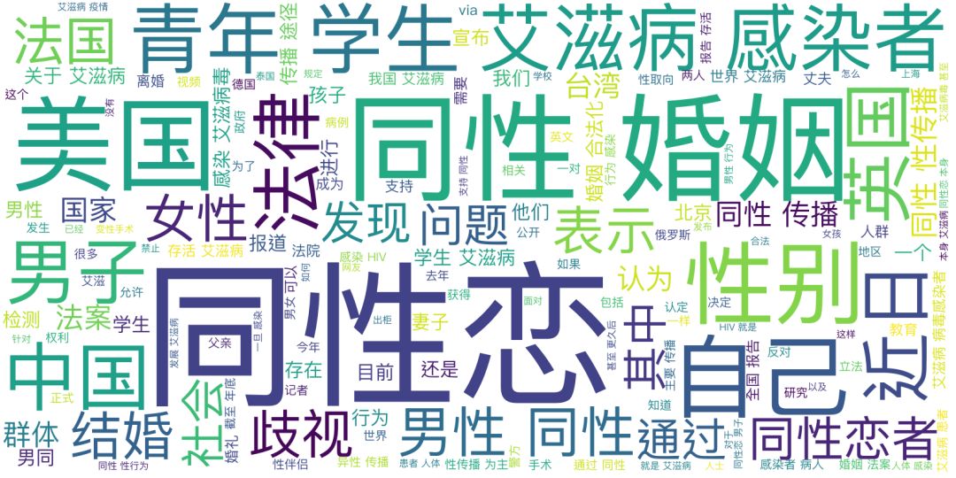 我们结合中国官方微博的表达习惯,选取同志群体及重要事件相关的词「同性」「男同」「女同」「双性」「变性」「跨性别」「间性」「耽美」「百合」「拉拉」作为关键词。