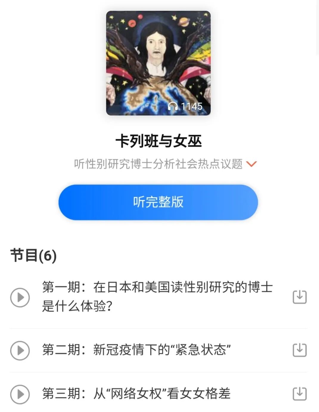 【《卡列班与女巫》主播和创始人】这是我和一个性别研究学者一起做的马克思女权主义播客,想透过女权政治经济学的视角,来分析社会议题。播客的名字是向Sylvia Federici致敬。