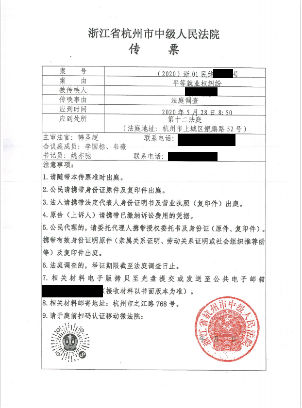 二审将于本周四(5月28日)下午15点于浙江省杭州市中级人民法院第十二法庭(杭州市上城区鲲鹏路52号)开庭审理