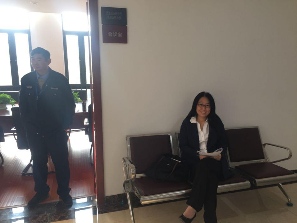 刘小楠教授在一审法庭门口等待出庭