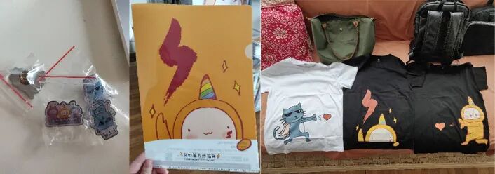2019年,我们根据社群伙伴喜好,定制了彩虹镇镇系列表情包和生动可爱的周边纪念品,包括T恤、文件夹、胸针、纸巾、U盘、针织公仔、布包、收纳袋、扑克牌、冰箱贴、钥匙扣等。