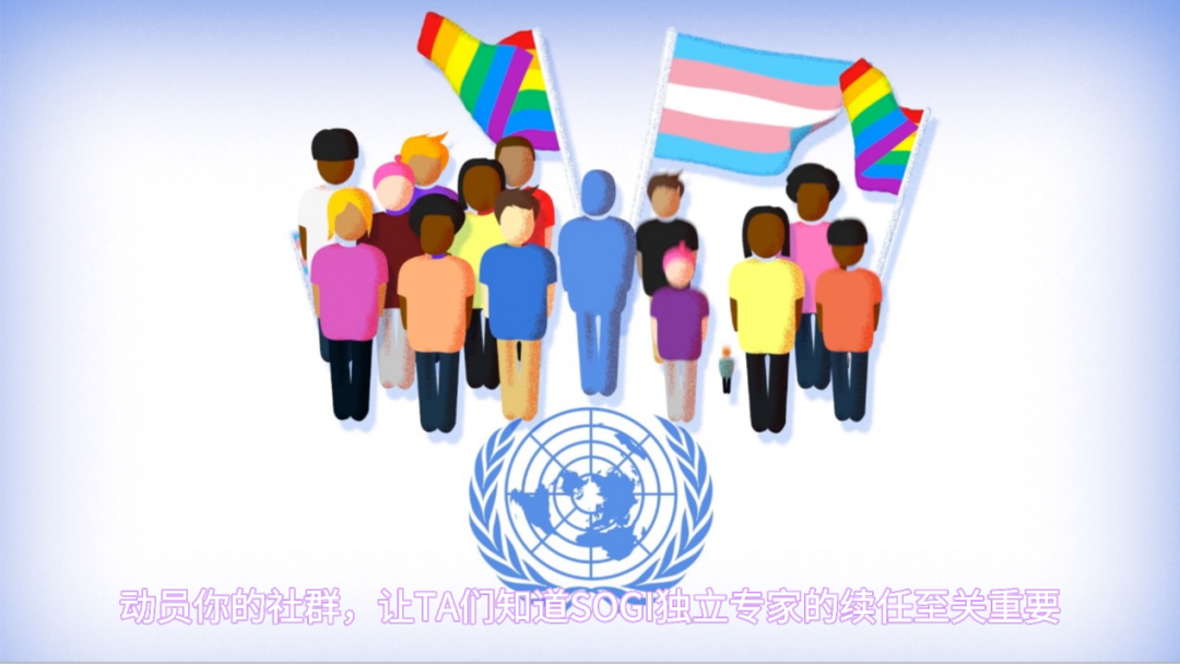 声援联合国SOGI独立专家续任全球动员视频(截图),视频中文内容由同语翻译。