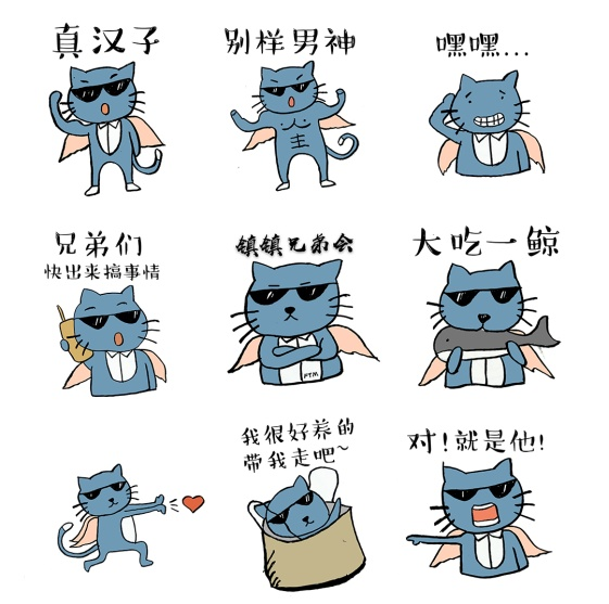 镇镇兄弟会 “飞天猫”(FtM)系列表情包。