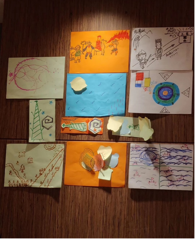 2019年8月,丹东。团建中,同语团队伙伴用绘画展现“运动中的我”。