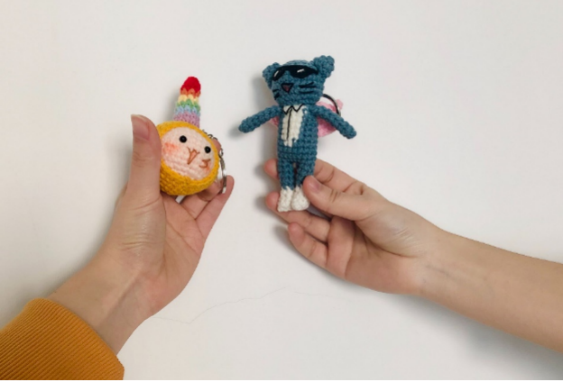 残障伙伴手工编织的镇镇和飞天猫挂饰。