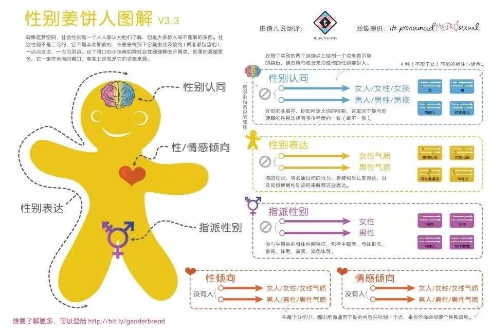有关性别认同和性倾向两个概念的不同与联系,我们可以请出性别姜饼人以作说明:
