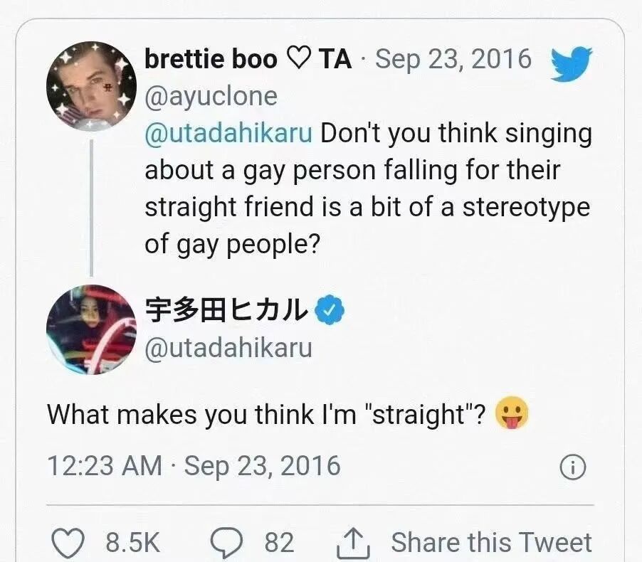 此外,宇多田光也并不是近年来唯一出柜为“非二元性别”的名人,英国歌手Sam Smith、美国歌手Demi Lovato近年来也都曾出柜为“非二元性别”。而且,宇多田光没出柜为同性恋,也不代表大家嗑的cp不是真的(划掉)。