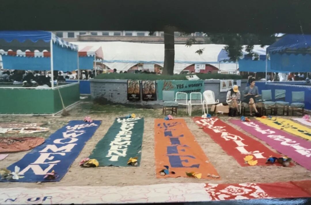 在会场外的空地上,各国NGO的代表支起了两百多顶帐篷[3],各个帐篷涉及到来自不同的地区的妇女议题 —— 韩国妇女白衣素裙,用民间祭祀仪式控诉日军二战时征用慰安妇、迫害妇女的罪行,身着和服的日本妇女展示着日本的七夕节礼俗[4]。