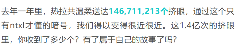 据热拉官方统计,2020年用户共在该软件上发送了超1亿次挤眼。从概率上来说,1亿次挤眼总会有一个轮到我?