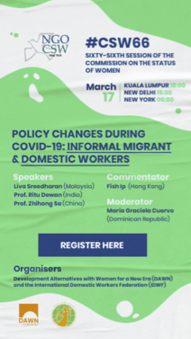 主办方:Development Alternatives with Women for a New Era (DAWN) and the International Domestic Workers Federation (IDWF)