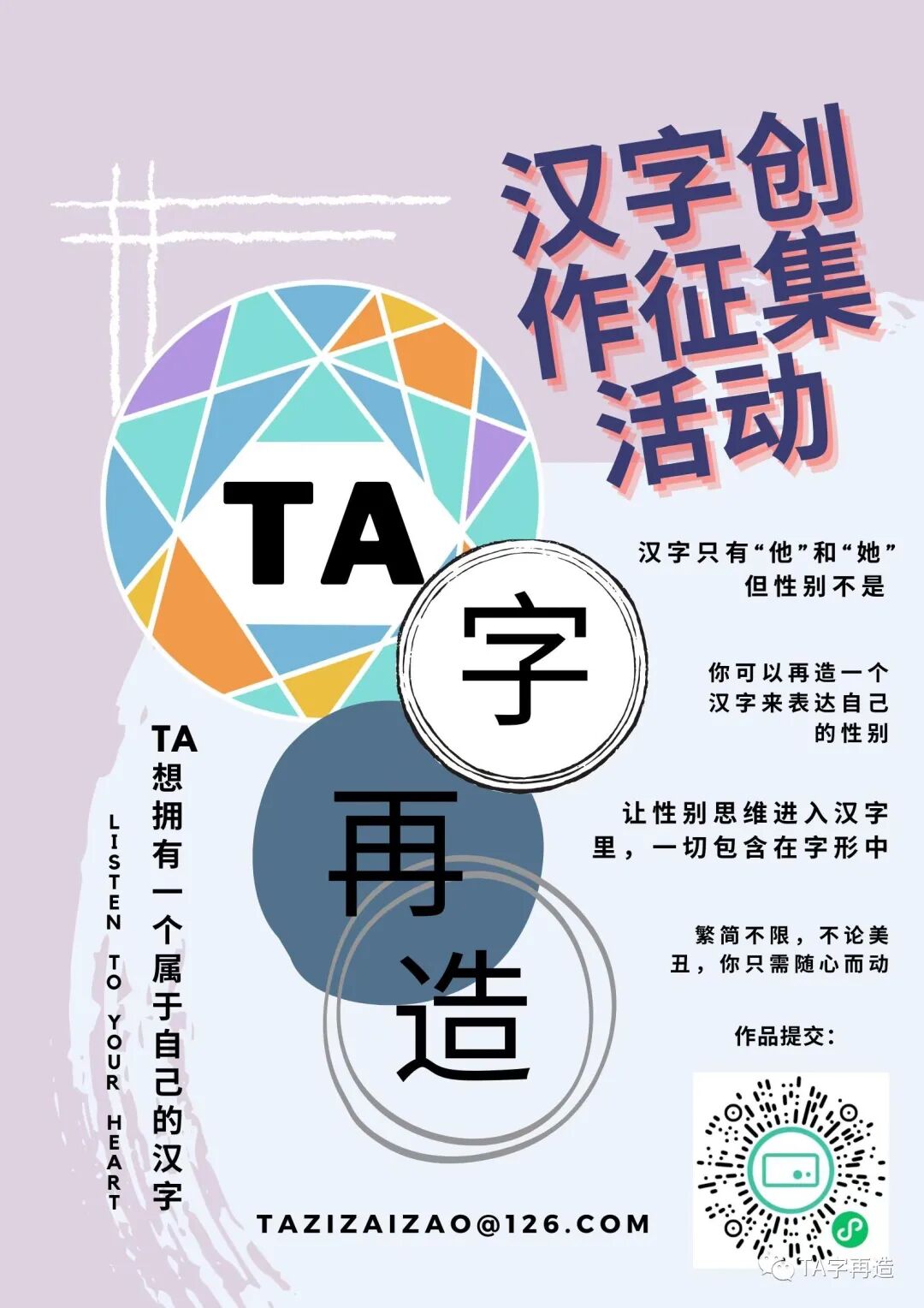 为拼音符号TA创造一个汉字,用汉字艺术表达你的性别认同