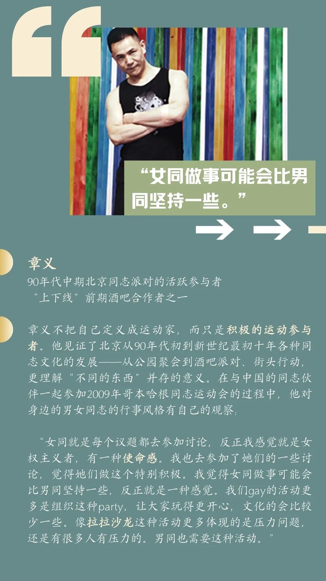 「人物故事系列」将按主题精选北京拉拉社区发展历史中重要人物的故事与Ta们的独到见解,为大家呈现运动中最精彩的人与情。