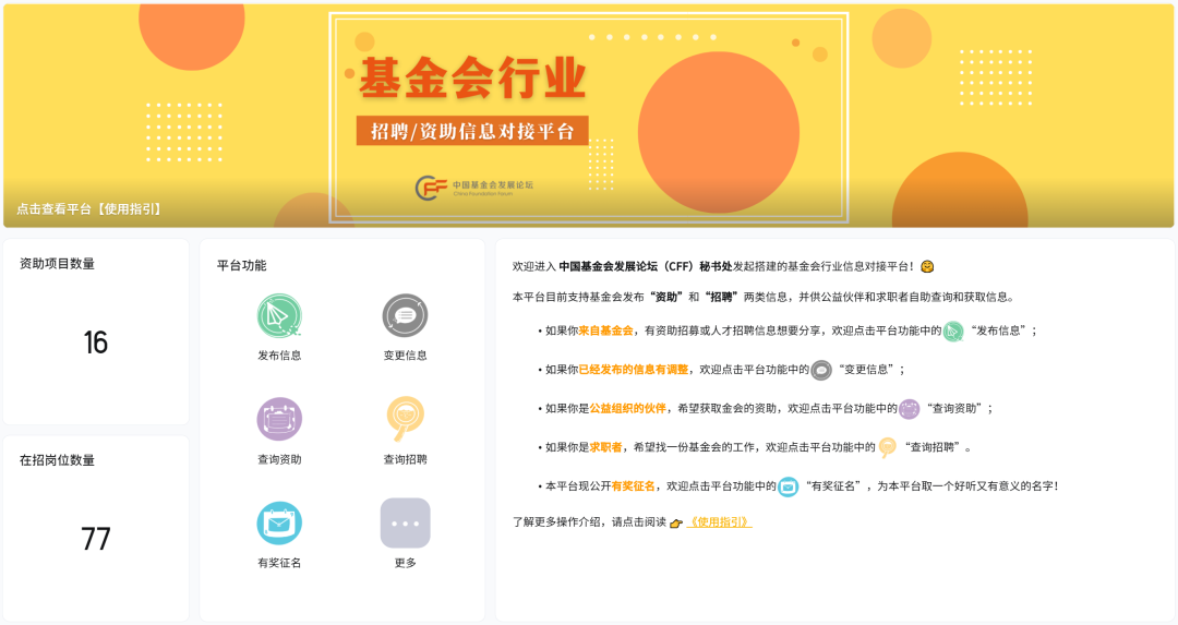 【资讯平台】:中国基金会发展论坛“基金会行业招聘/资助信息对接平台”