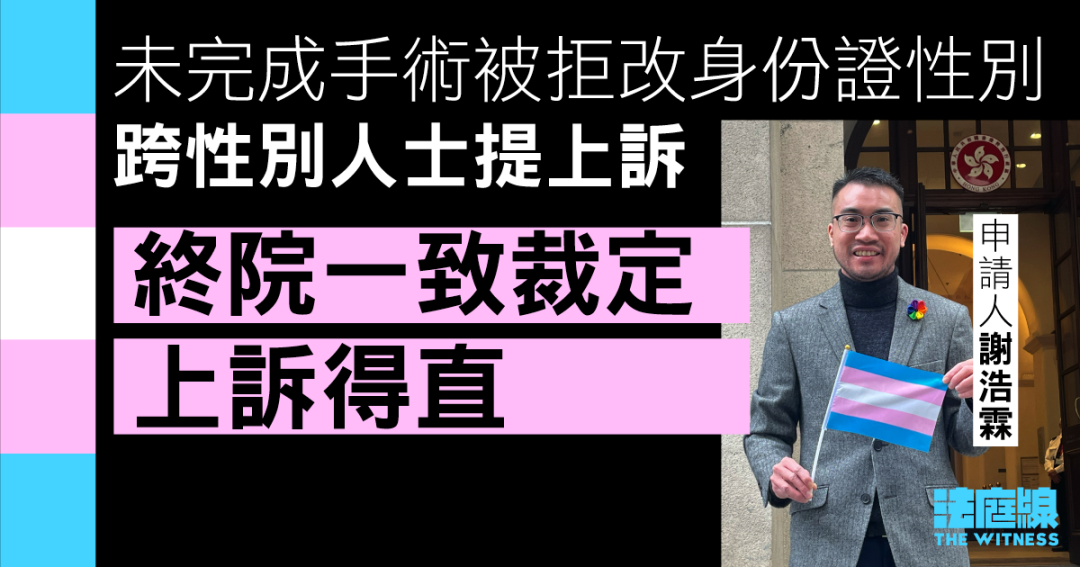 《未完成手术被拒改身份证性别,跨性别人士终极胜诉》